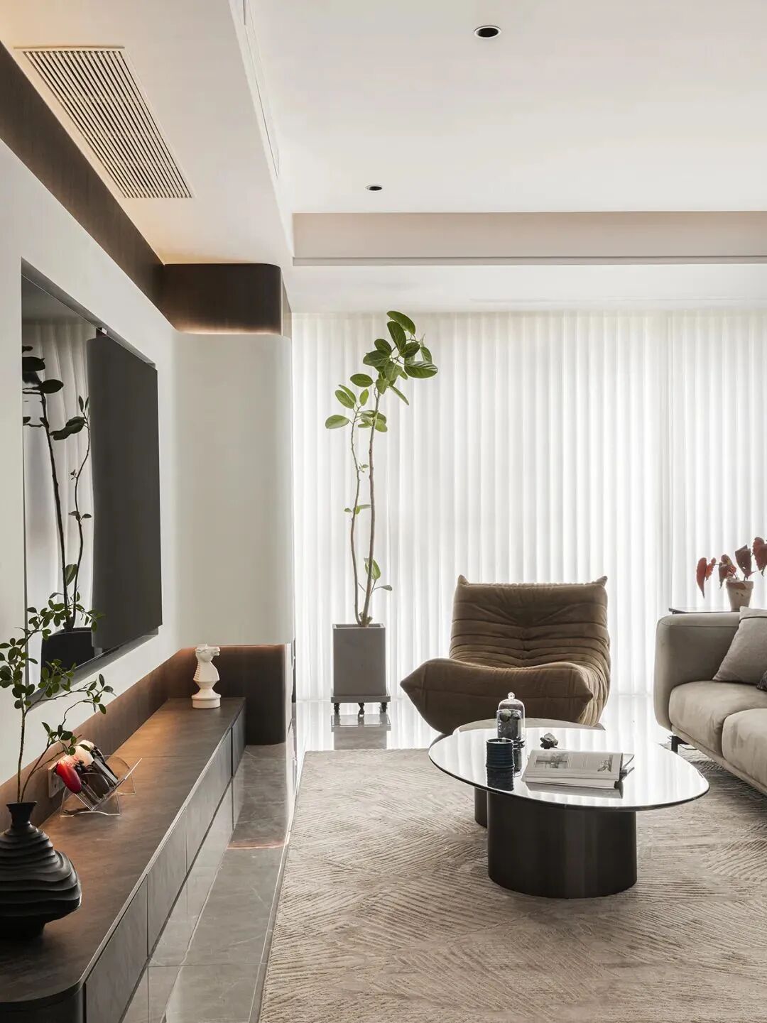 茶几:小型茶几会减少空间的局促感,异形有设计感的茶几会看上去更时尚;现在也流行无茶几客厅,有置物需求可以用小推车或边几代替。