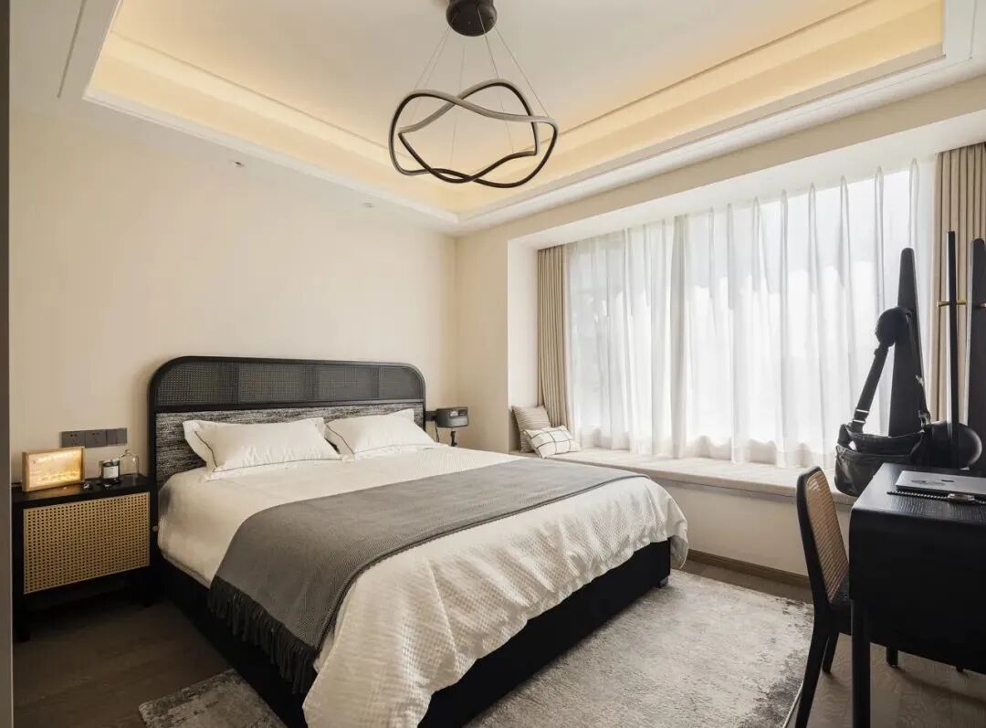 四件套:最好是选择低饱和度的床品,比如灰色、浅黄色、豆绿色等,营造一个温和的睡眠环境。