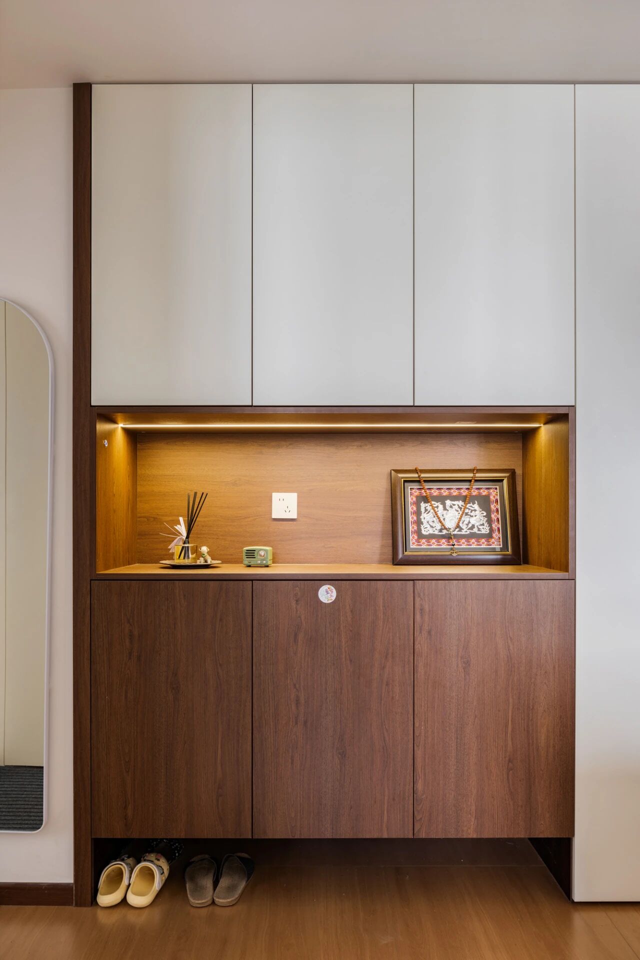 比如玄关鞋柜,喜欢穿高跟鞋或短靴的人层高就可以做高一些,女生的长筒靴可以单独做出一个分区。