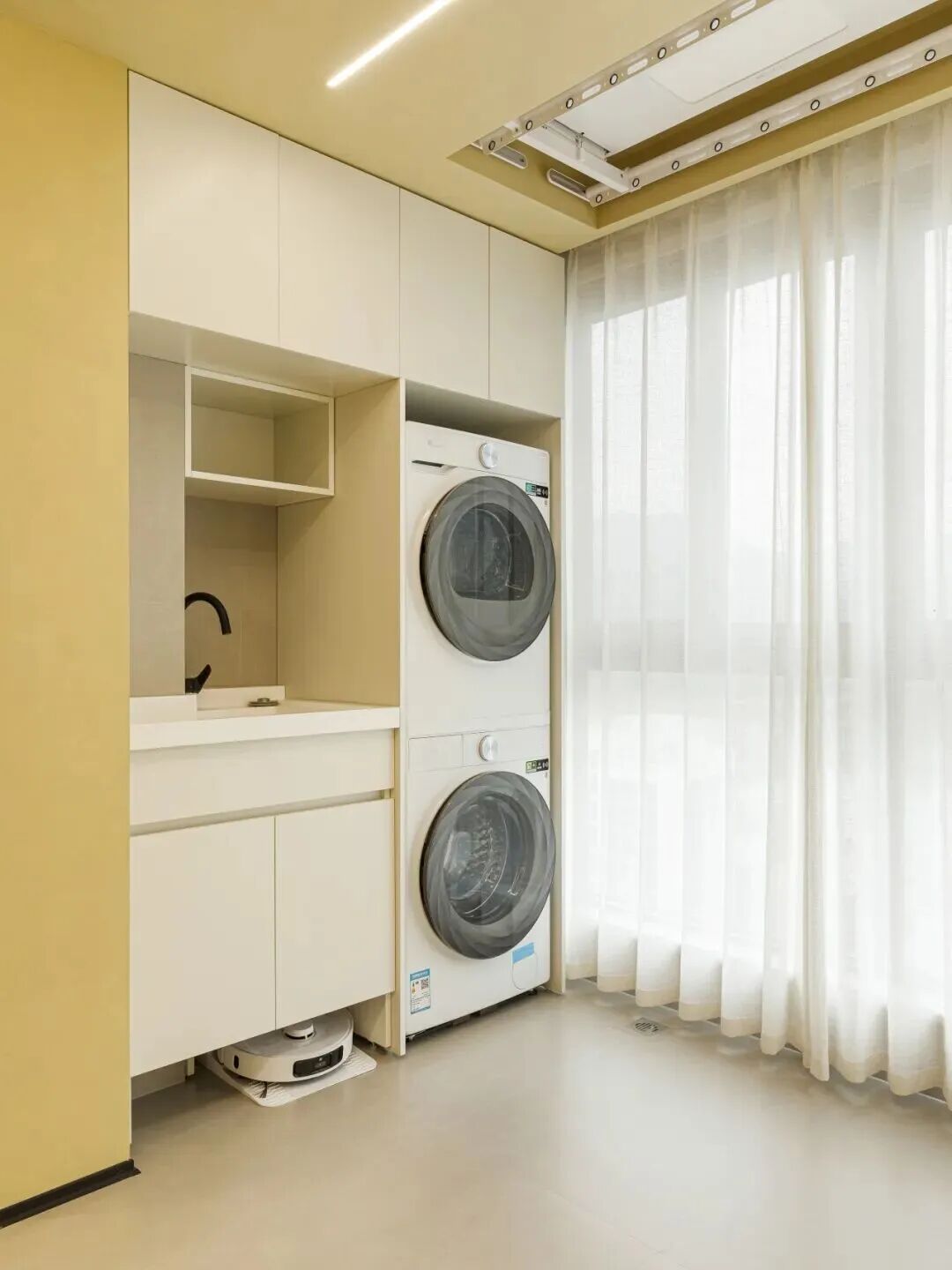 很多人舍不得阳台的景观,也舍不得阳台可以晾衣服的便利,于是做景观阳台加根升降晾衣架。 想法很美好:既可以观景,又方便晾衣服。 然而现实是,衣服好像是长在晾衣架上一样,每次刚拿下来就有新洗的衣服挂上去。 所以建议大家想做景观阳台的,直接用烘干机代替晾衣架,不装晾衣架直接避免衣服长满阳台。