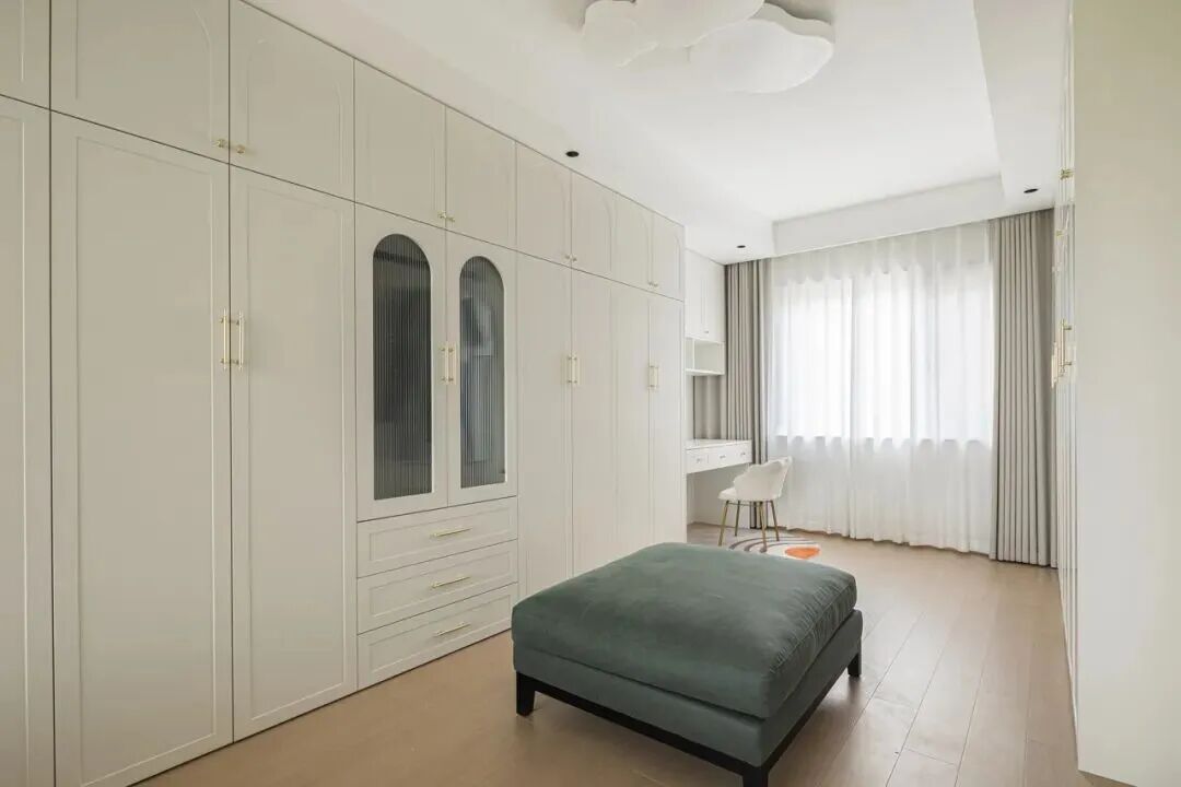 合理设计衣柜空间,做好分区,能够有效防止衣服长在卧室的各个角落。 充分考虑换季衣物和换季被褥等的存放,衣柜多做挂衣区,少做叠衣区,根据实际使用情况合理设置抽屉。