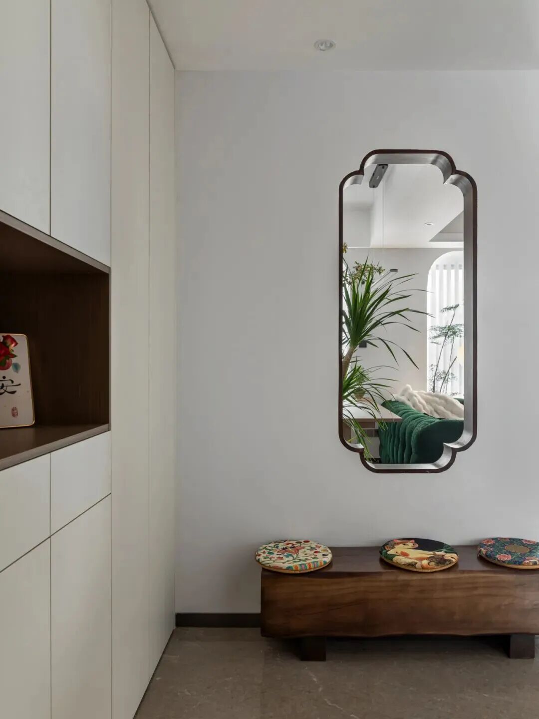 半镂空的玄关为整个空间提供了一种高级又灵动的呼吸感,避免刚进门就产生压抑的感觉。
