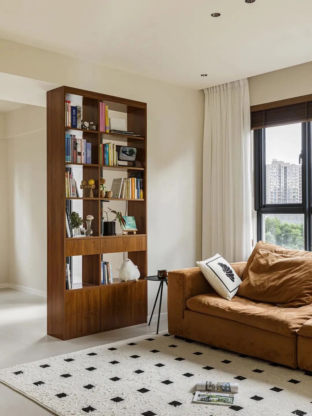 也可以选择不要茶几,换成小推车或小边几,占地更小,对年轻一些的家庭更友好。